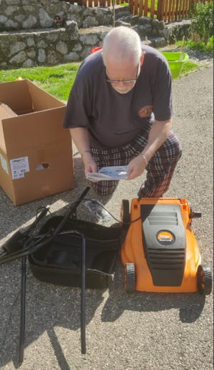 We have bought a new electric lawnmower, as our old one “gave up the ghost” while I was in England.