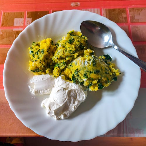 Polenta with nettles and sour cream