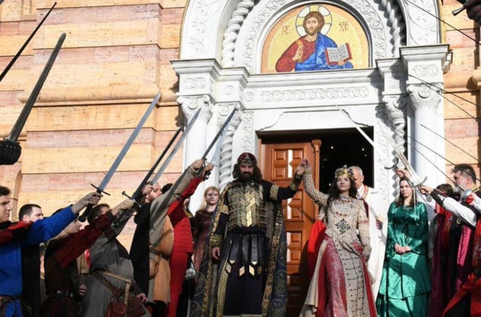 The first day of the festival begins with a traditional gathering in front of the Cathedral of Christ the Saviour, where the wedding of King Stefan Dragutin and Hungarian Princess Catalina Arpad takes place.