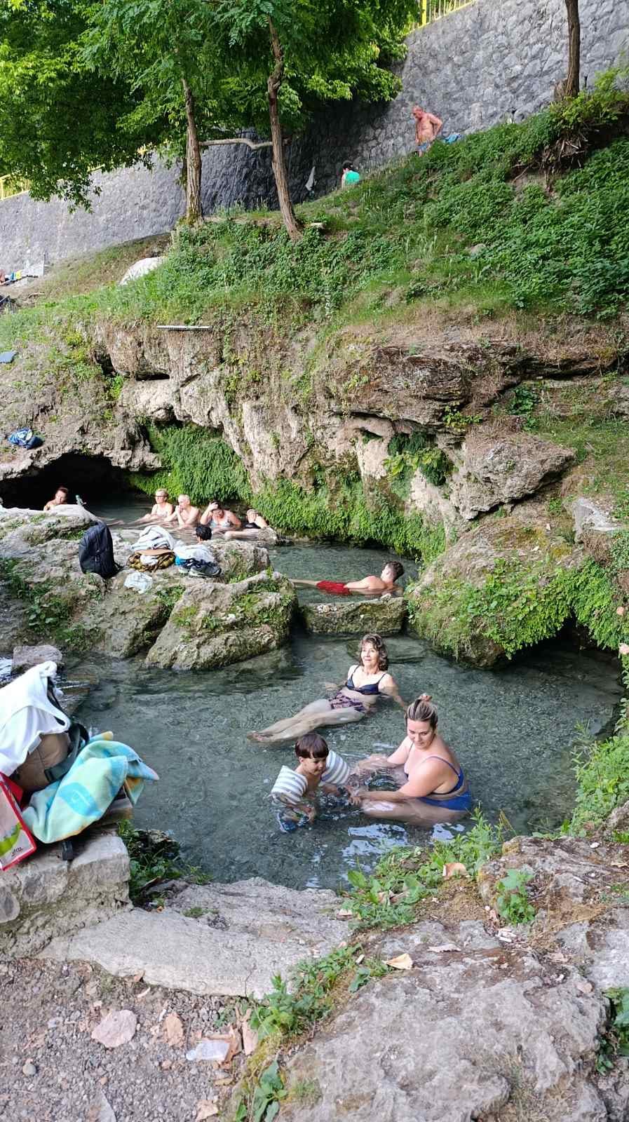 Afterwards, we drove past Banja Vručica, natural warm pools on the river. Even as the evening got chilly, people sat happily in the steaming water, beer cans in hand, soaking in the supposed healing properties.