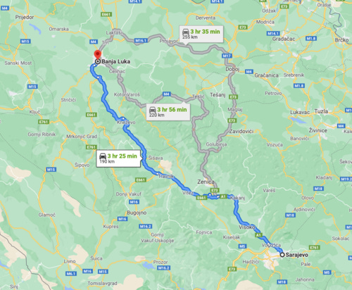 When driving back from Sarajevo there are 3 routes we can choose from: