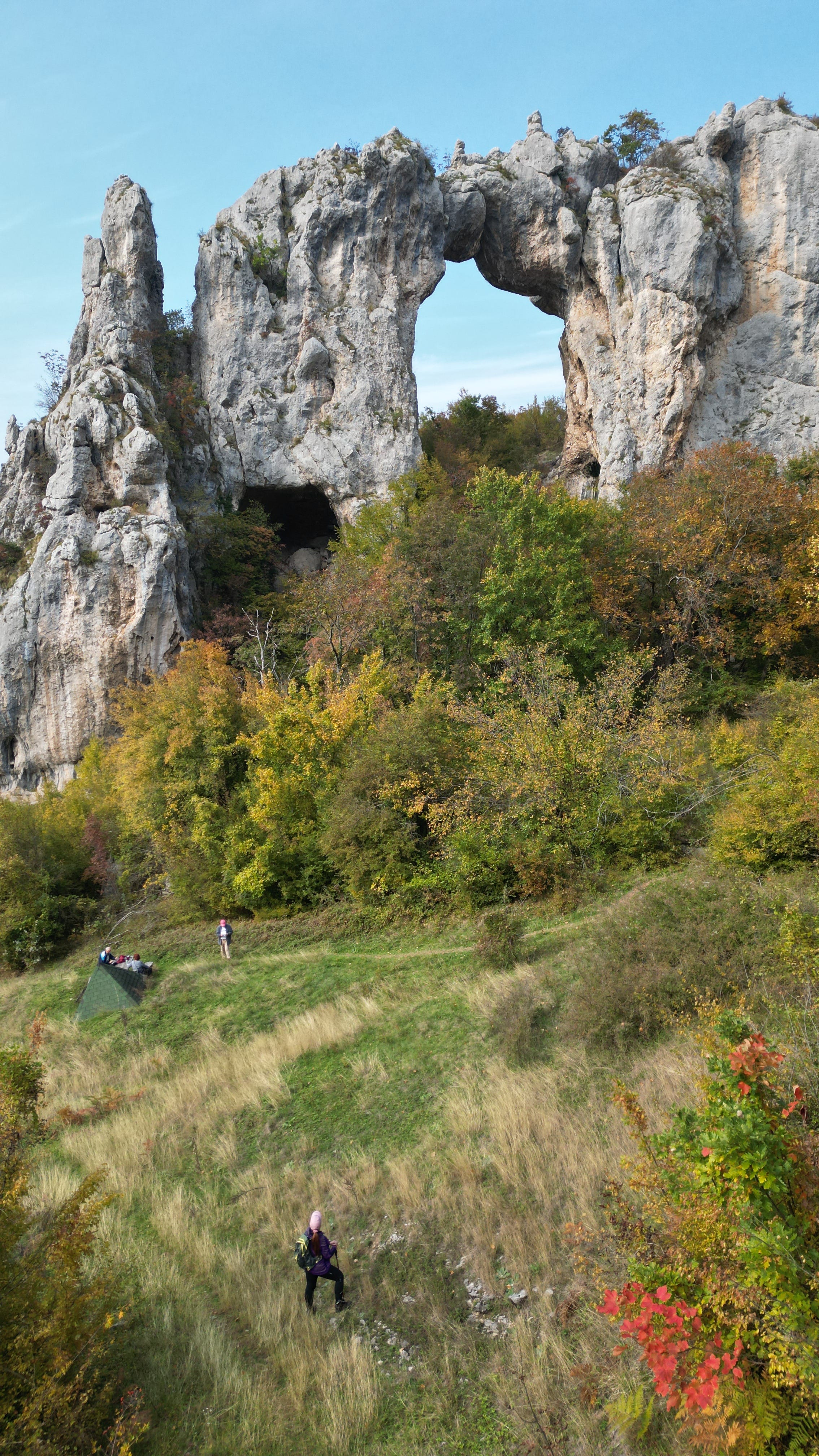 I unpack my drone, take a deep breath, and launch it. I’m always slightly nervous after a previous crash, but today it flies perfectly, circling high above the Kameni Most and the surrounding hills.