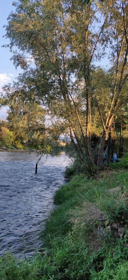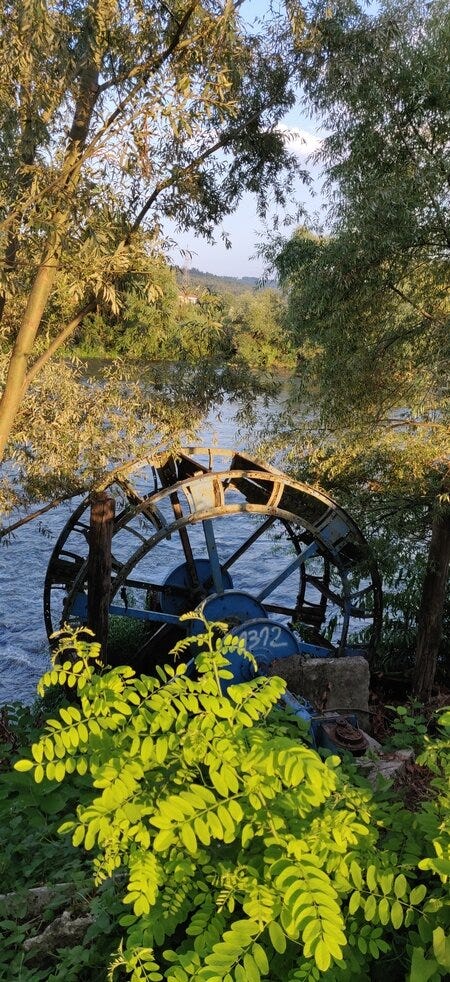 The river flows slowly by at the Mlin and there's definitely a peaceful feel about it