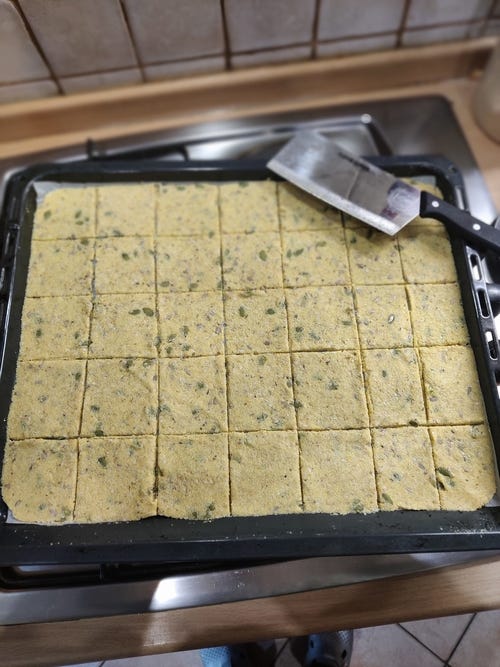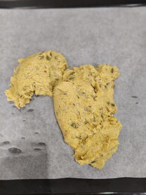 Mix all the dry ingredients, then add boiling water. Make a nice dough. Spread it thinly on parchment paper ( it's not easy, so take your time).