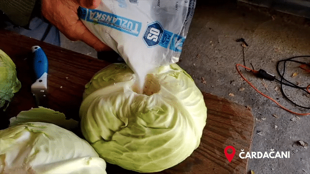 Tamara's father prepared shredded cabbage that will be used as a salad, and also pickles whole cabbages, whose leaves will be used in making Sarma and other winter recipes.