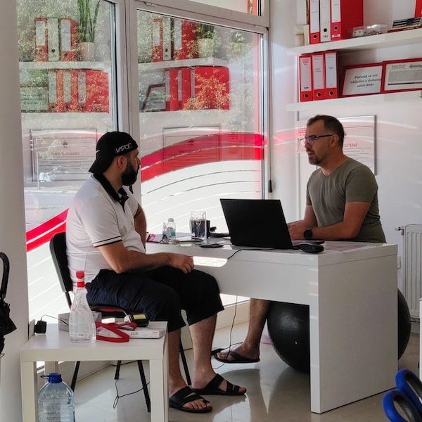 Inside the centre everything was really professionally organised. Outside however, where people were queueing, another matter. It really seemed like “herding cats”. No real control shown. And a very irritating Balkan habit is, that everyone seems to have a reason for being first in the line.