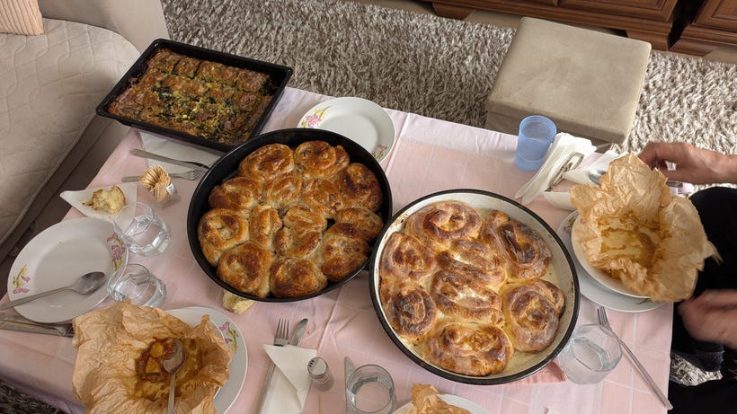 and Sirnica (the cheese version). These appeared as if by magic, and even though everyone said “just a little,” plates somehow kept filling up again.