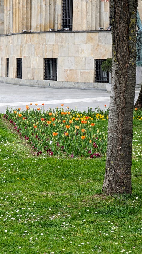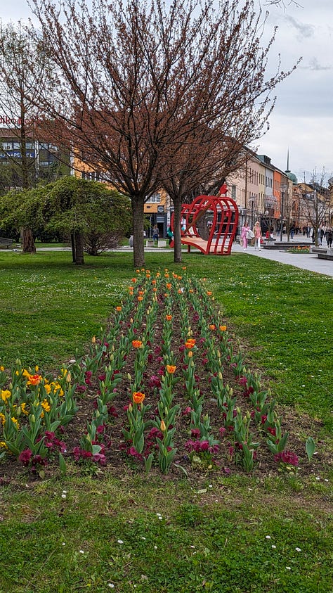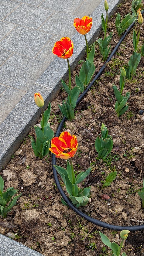 The city management annually plant these bulbs in the Spring flower beds that are across the city.