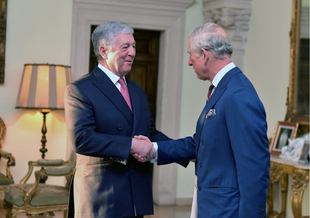 He was born in London, and his God Parents were the late King George 6th and (and as she was then) Princess Elizabeth.