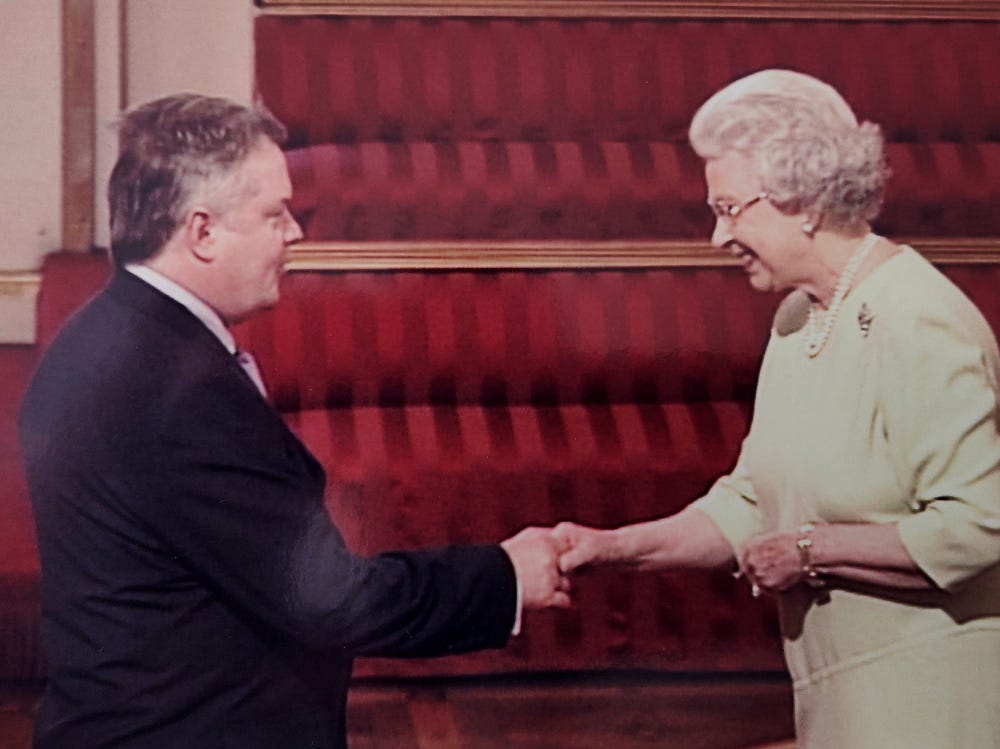 My connection with Her Majesty was that I first met her in 1952, shortly before I was born. My mother was pregnant with me, and had been invited to Buckingham Place to see my late father awarded the George Medal for bravery. My father was a police officer.