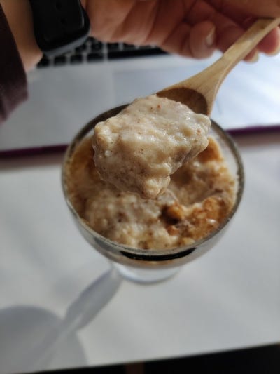 After that, chill well in the refrigerator (overnight is the best) and serve it with cinnamon, a few walnuts and maple syrup.