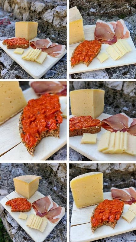 They bought some amazingly tasty pršut from Kotor, and during their cross country return journey, cheese from the Cincar Mountain